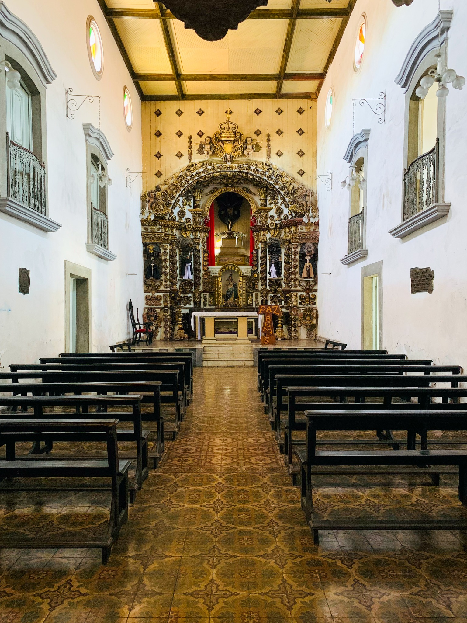 O altar em madeira trabalhada veio de Lisboa por volta de 1726-1727.