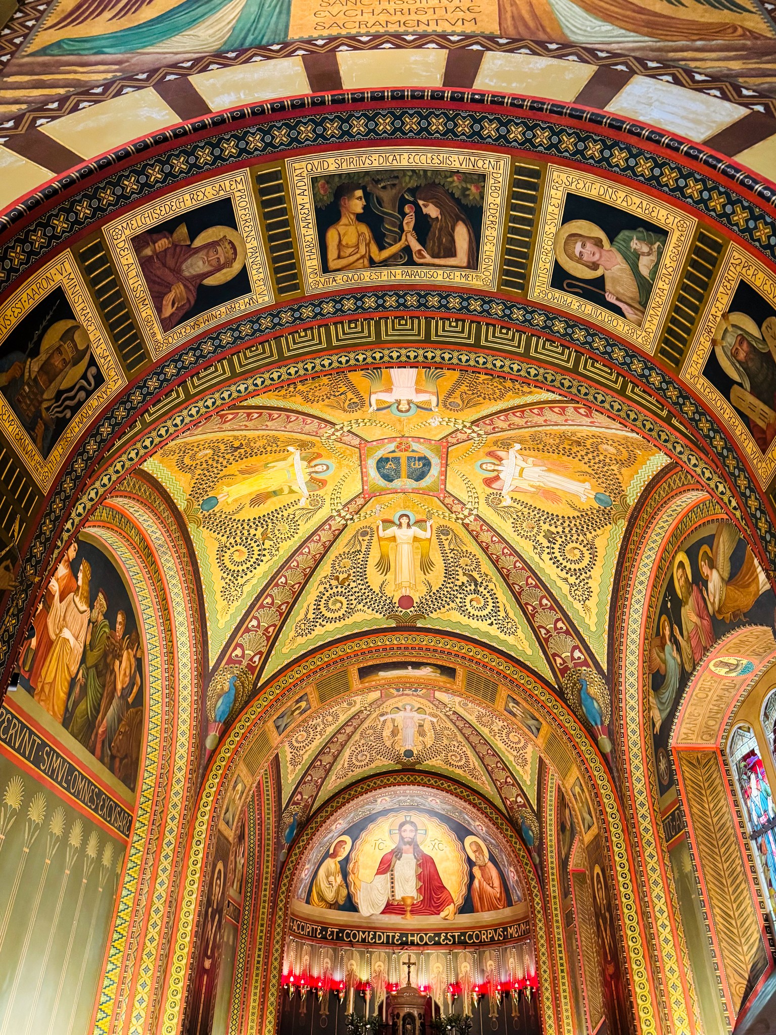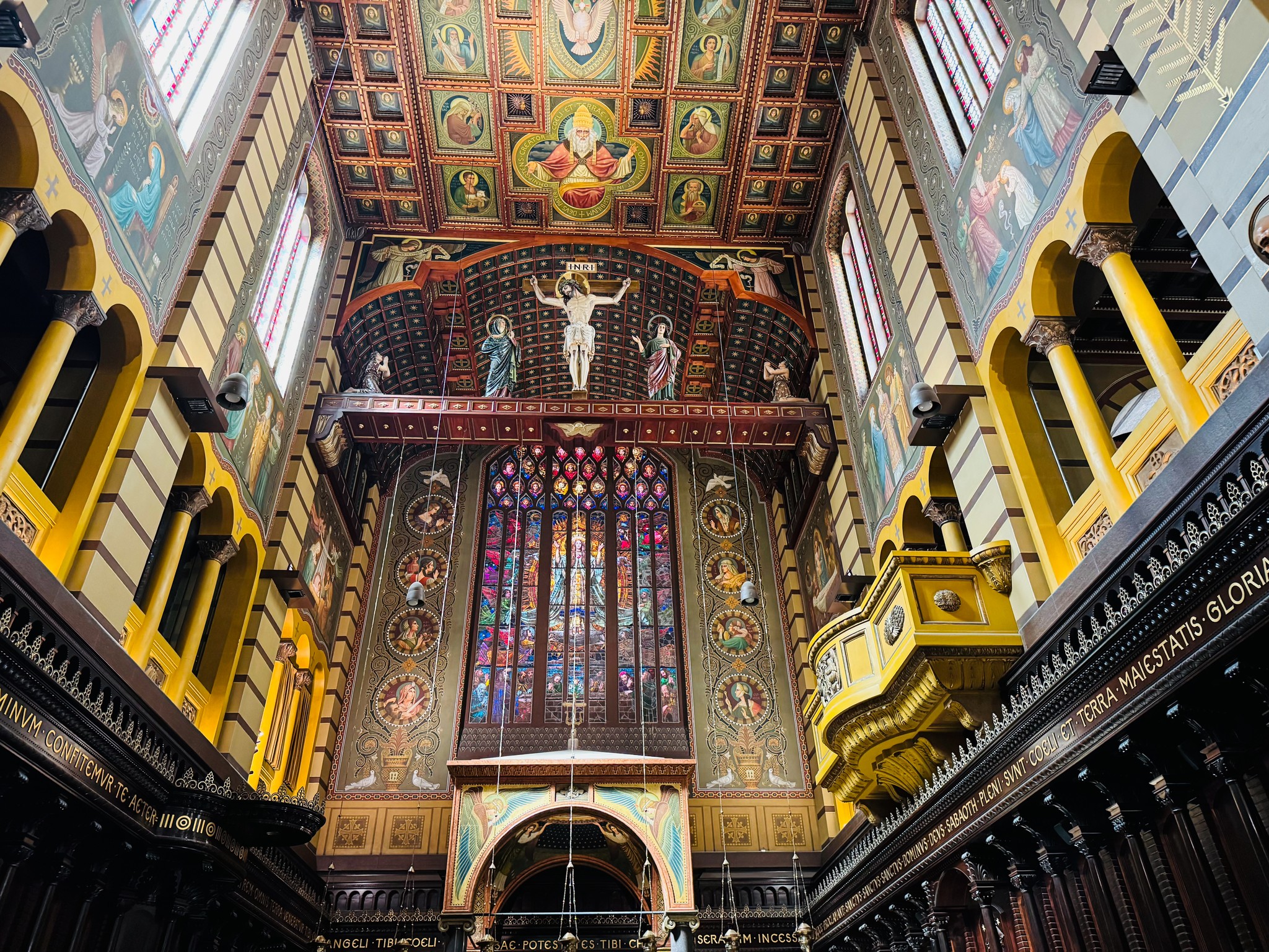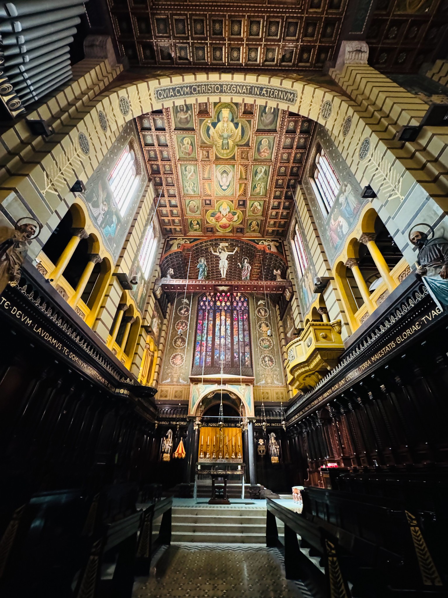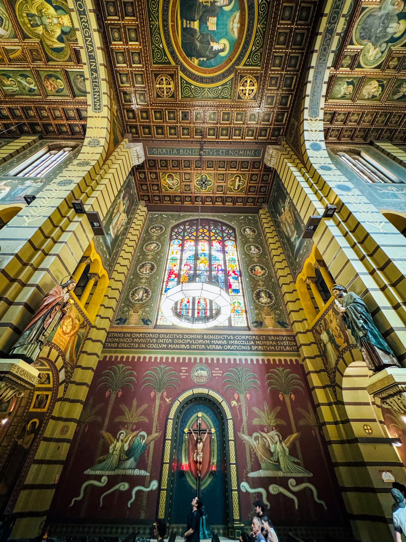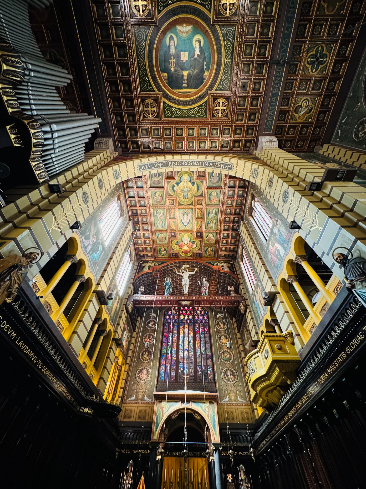 A basílica é monumental, cheia de detalhes, pinturas e uma atmosfera que mistura arte, história e espiritualidade. Quando você entra e escuta os monges cantando em latim, está dentro da basílica e não dentro do mosteiro.