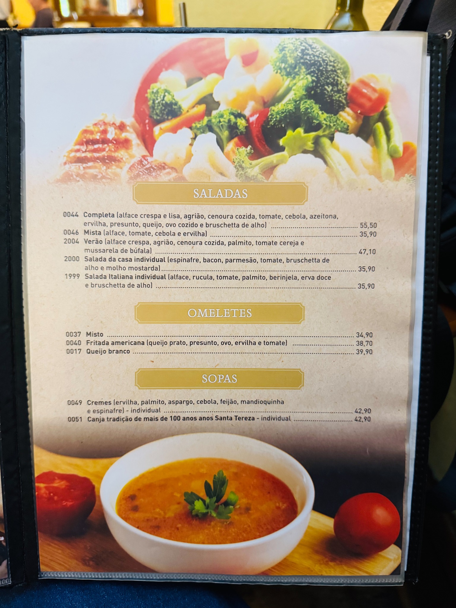 Durante a minha visita, por estar próximo do almoço, optei por um omelete misto (R$34,90) e que estava uma delícia – prato farto e bem saboroso.