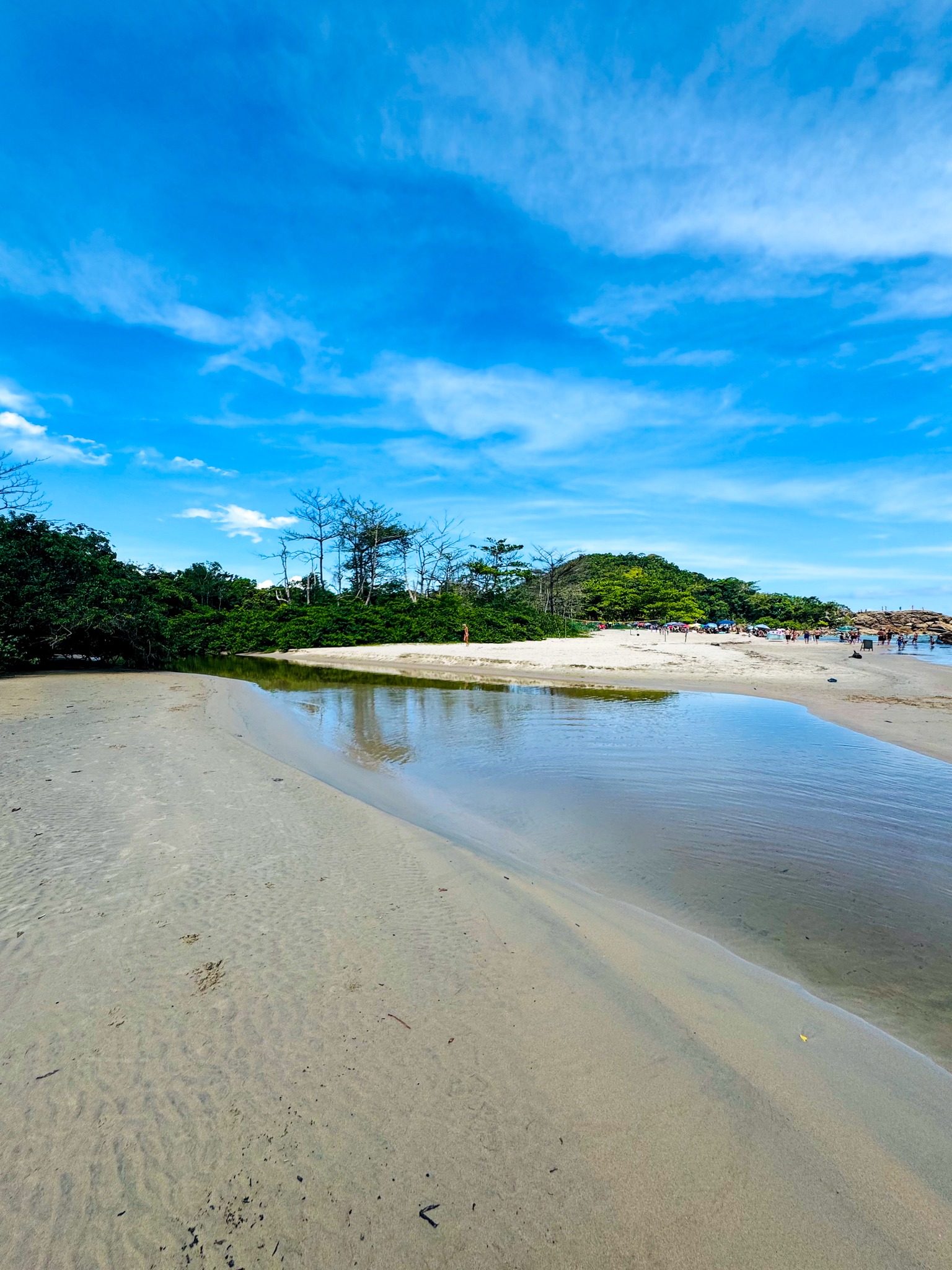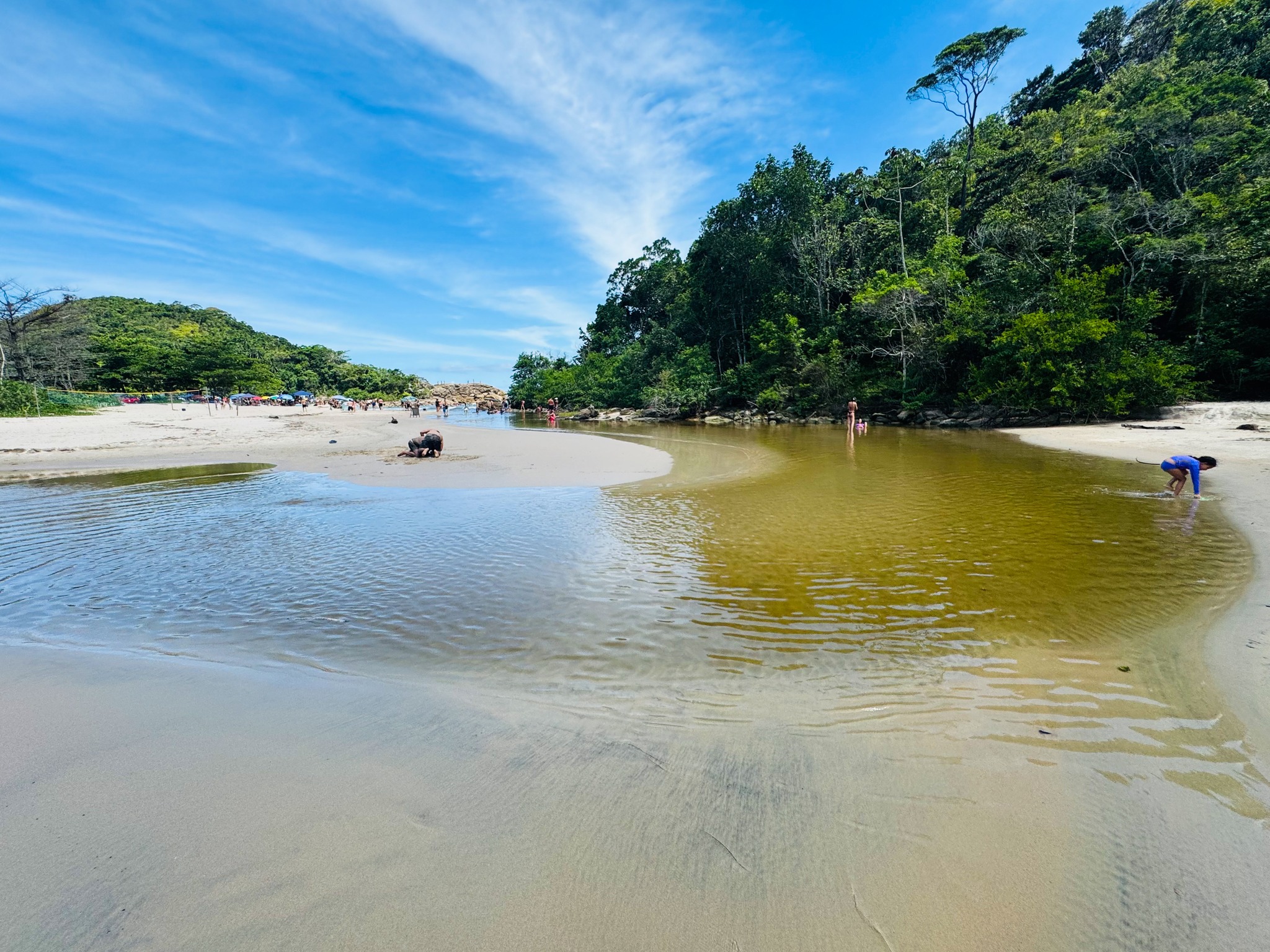 No lado esquerdo da praia, indo para Cachadaço, há um pequeno riacho que desagua no mar.